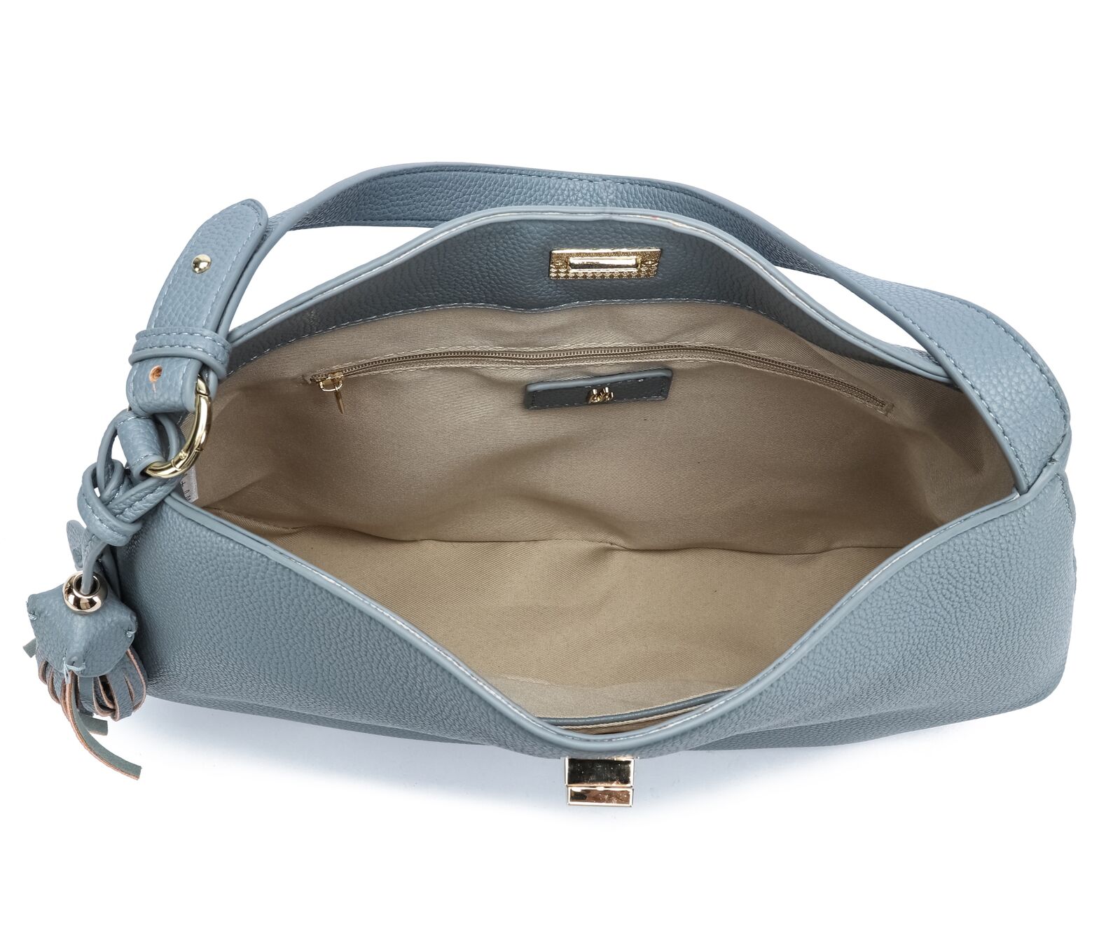 The Crystal Tote combines elegance with practicality. Its spacious main compartment, interior zip and slip pockets, and secure twist-lock closure keep your essentials organised, while the adjustable shoulder strap and gold-tone hardware add style. Finished with a pebble texture and a chic tassel detail, it's perfect for everyday wear.
